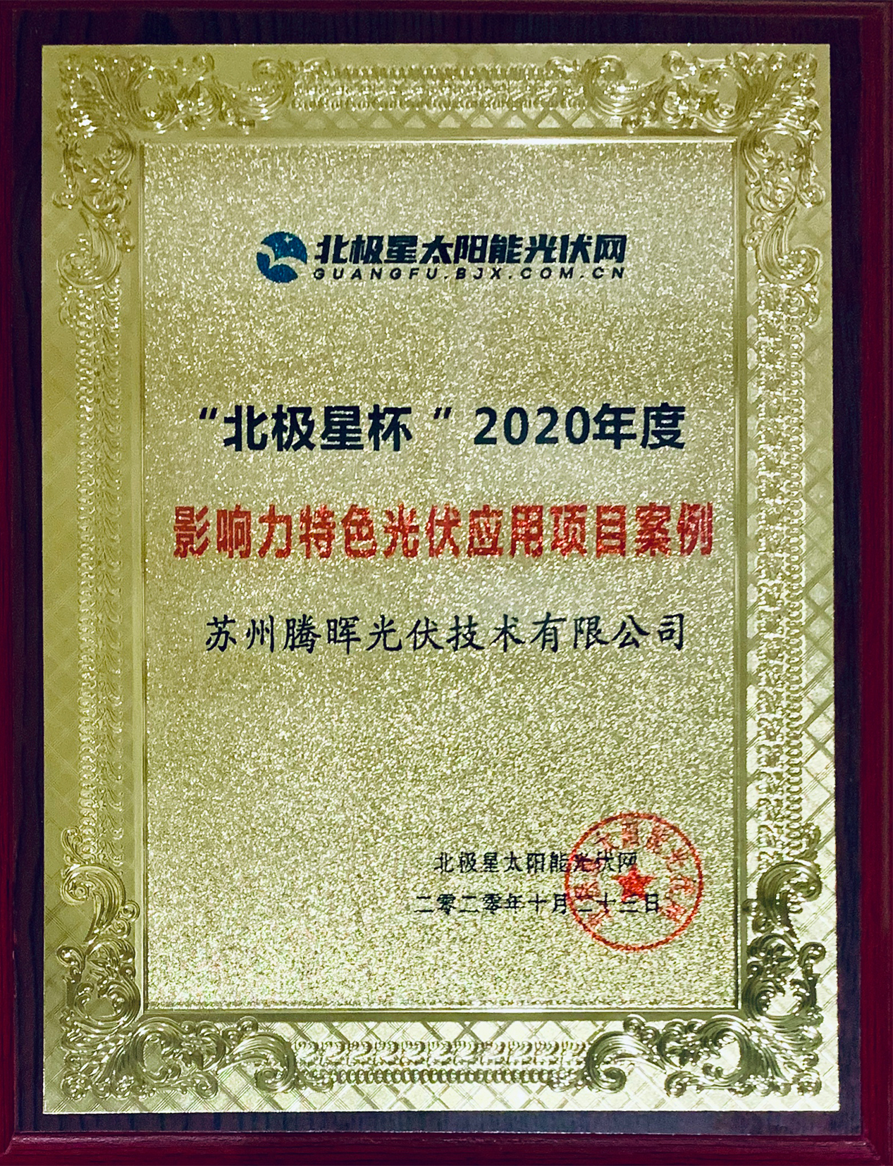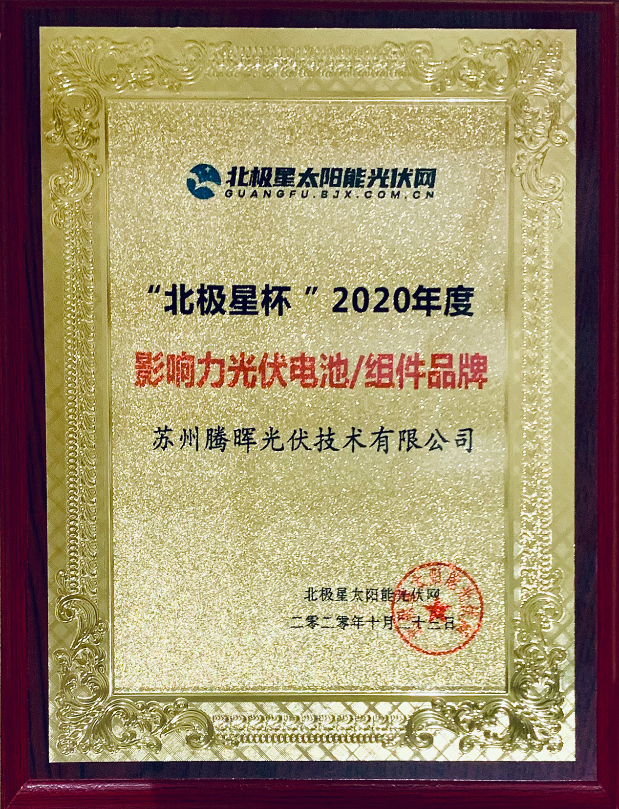 2020年10月23日,“北極星杯”2020光伏影響力品牌評選頒獎典禮在北京舉辦,經(jīng)過激烈角逐,騰暉光伏從260多家入圍企業(yè)中脫穎而出,榮膺2020影響力光伏電池/組件品牌,此外,阿根廷高查瑞315 MW光伏電站項(xiàng)目榮獲“影響力特色光伏應(yīng)用項(xiàng)目案例獎”。