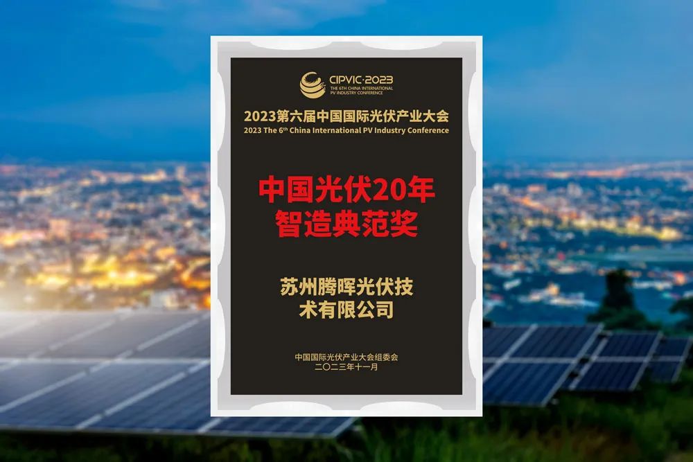 2023年11月13-16日,2023第六屆中國國際光伏產(chǎn)業(yè)大會在四川成都隆重舉行。相關(guān)政府領(lǐng)導(dǎo)、全球光伏行業(yè)頂尖專家學(xué)者、領(lǐng)軍企業(yè)家、光伏企業(yè)代表齊聚一堂,共同探討光伏行業(yè)發(fā)展趨勢,推動綠色低碳可持續(xù)發(fā)展。騰暉光伏應(yīng)邀出席了本次盛會,并榮獲“中國光伏20年·智造典范獎”。