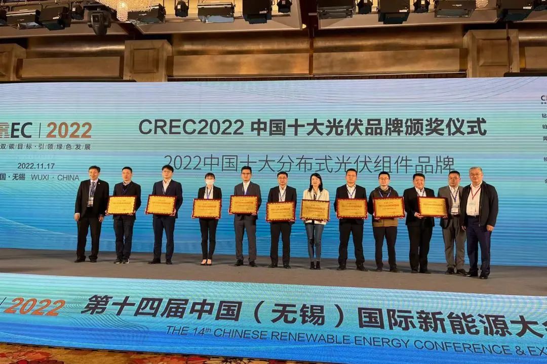 同期,由中國(無錫)國際新能源大會(huì)暨展覽會(huì)(CREC)組委會(huì)舉辦的“中國十大分布式光伏品牌評選”活動(dòng)在頒獎(jiǎng)典禮現(xiàn)場正式公布獲獎(jiǎng)企業(yè)榜單,騰暉光伏再次榜上有名,至此,騰暉光伏已數(shù)次榮獲“中國十大分布式光伏組件品牌”稱號。