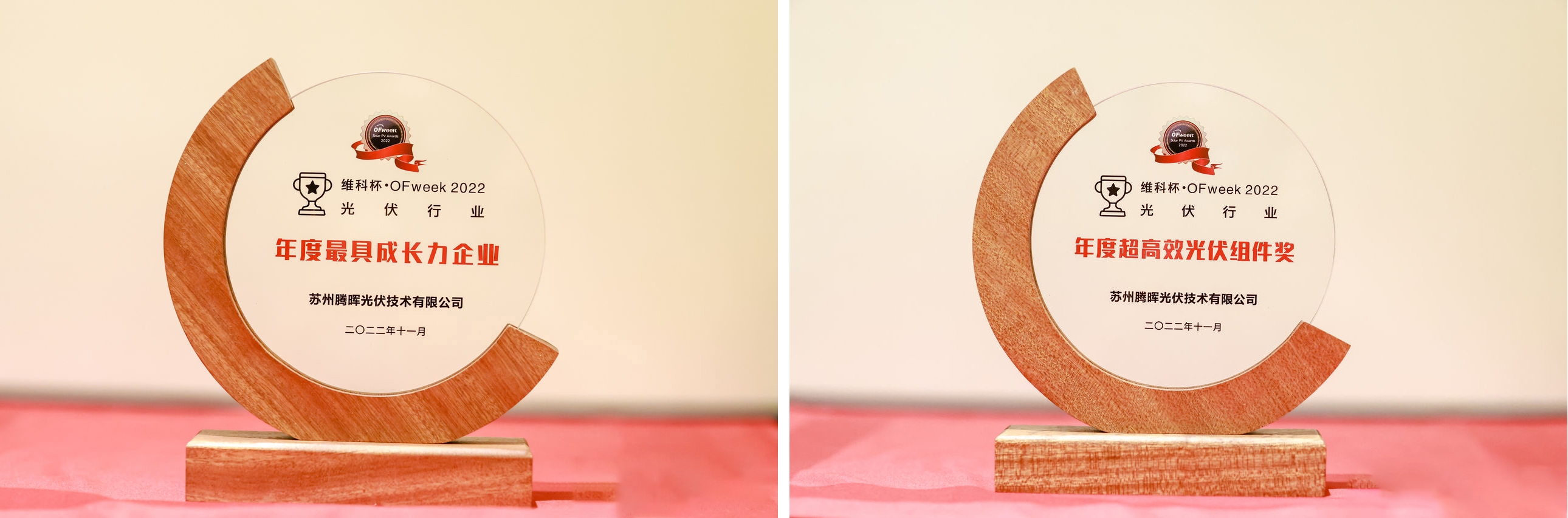 近日,OFweek 2022(第十三屆)太陽能光伏產(chǎn)業(yè)大會暨光伏行業(yè)年度頒獎典在深圳隆重舉行,騰暉光伏應(yīng)邀出席,并成功斬獲“2022年度超高效光伏組件獎”、“2022年度最具成長力企業(yè)”兩項(xiàng)大獎。