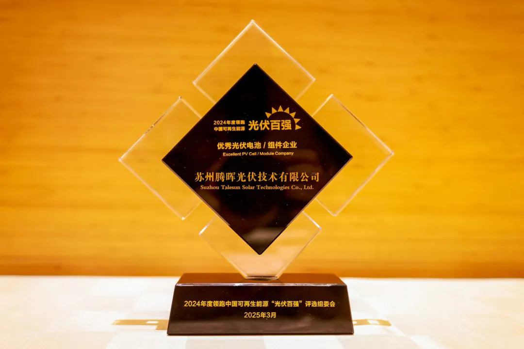 近日,由江蘇省可再生能源行業(yè)協(xié)會(huì)主辦的”第十二屆中國(guó)(江蘇)國(guó)際新型光伏創(chuàng)新發(fā)展大會(huì)”在南京隆重召開(kāi)。蘇州騰暉光伏技術(shù)有限公司(簡(jiǎn)稱”騰暉光伏”)作為新能源領(lǐng)域領(lǐng)軍企業(yè)之一受邀出席,并憑借卓越的技術(shù)創(chuàng)新實(shí)力榮獲”2024年度領(lǐng)跑中國(guó)可再生能源優(yōu)秀光伏電池/組件企業(yè)”稱號(hào)。本次大會(huì)匯聚政府主管部門、行業(yè)協(xié)會(huì)、科研機(jī)構(gòu)及產(chǎn)業(yè)鏈上下游企業(yè)代表400余人,圍繞光伏技術(shù)前沿突破、市場(chǎng)趨勢(shì)研判、政策導(dǎo)向解讀等核心議題展開(kāi)深度對(duì)話,共繪產(chǎn)業(yè)高質(zhì)量發(fā)展藍(lán)圖。