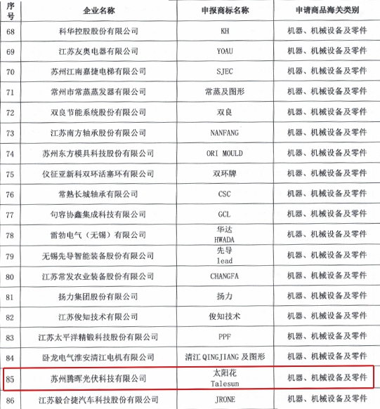 近日,江蘇省商貿(mào)局公布2020-2022年度江蘇省重點培育和發(fā)展的國際知名品牌名單,我市20家企業(yè)獲評,蘇州騰暉光伏技術(shù)有限公司成功入選。