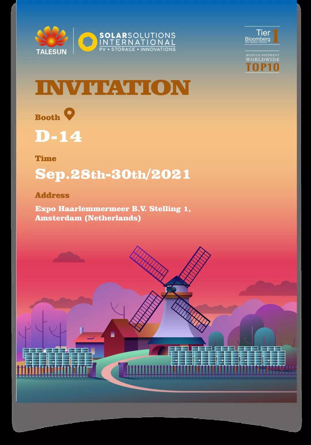 9月28-30日,2021年Solar Solutions International 展即將在荷蘭阿姆斯特丹市哈勒默梅爾會展中心隆重舉行,騰暉光伏將攜系列高效光伏組件亮相這一平臺。該展會作為西北歐最大的太陽能貿易展會之一,已經(jīng)成為荷比盧經(jīng)濟聯(lián)盟內光伏產業(yè)的著名品牌盛會,眾多光伏生產商、安裝商、服務商以及終端用戶將齊聚一堂。