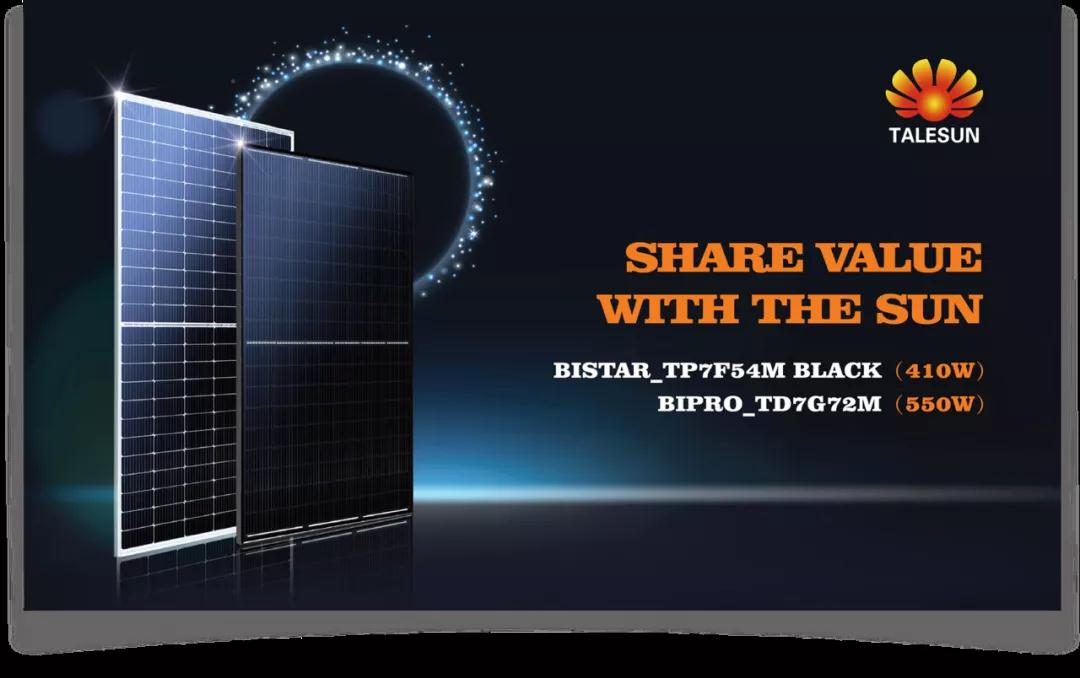 本屆展會上,騰暉光伏針對當?shù)厥袌鲂枨笳钩鰞煽罟夥M件產品,包括410W 的BISTAR系列黑組件和550W的BIPRO系列雙玻組件。兩款產品都采用了182mm大尺寸半片電池片和多主柵設計,有效提升轉換效率和降低能源輸出損耗,適用于多種應用場景。