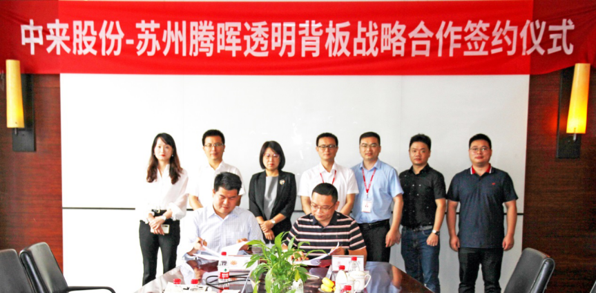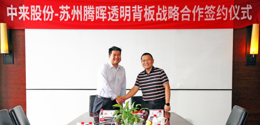 蘇州騰暉光伏總裁盛昊與中來新材總經(jīng)理程旭東簽署透明背板戰(zhàn)略合作協(xié)議