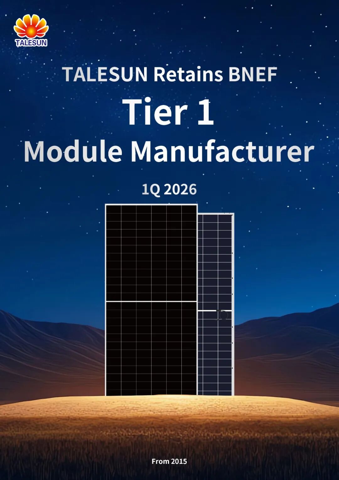 Retaining the BNEF Tier 1 rating is a continued vote of confidence in Talesun Solar’s overall competitiveness from global markets and financial institutions.