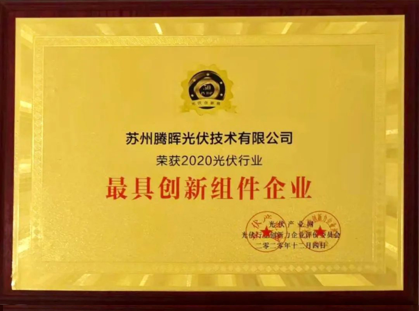 12月4日,由山東省太陽能行業(yè)協(xié)會和光伏產(chǎn)業(yè)網(wǎng)聯(lián)合發(fā)起的以“創(chuàng)新賦能 共迎平價”為年度主題的2020第五屆光伏創(chuàng)新大會(PVIC 2020)在山東濟(jì)南召開,同期舉辦了「PV TOP 50」2020光伏創(chuàng)新榜頒獎典禮。經(jīng)過激烈的角逐,騰暉光伏不負(fù)眾望,憑借卓越高效的組件產(chǎn)品以及不斷創(chuàng)新的企業(yè)經(jīng)營理念,獲評“2020光伏行業(yè)最具創(chuàng)新組件企業(yè)”。